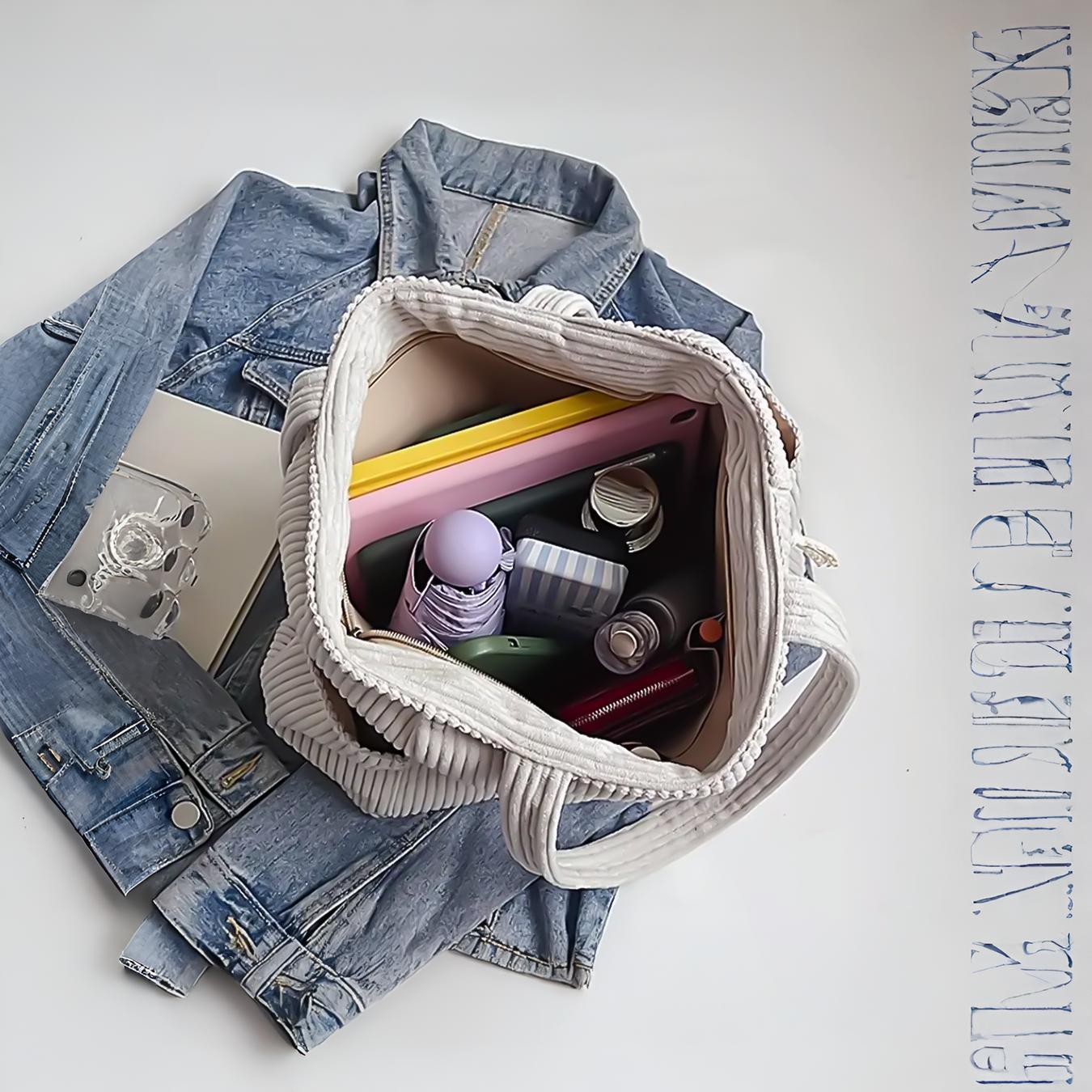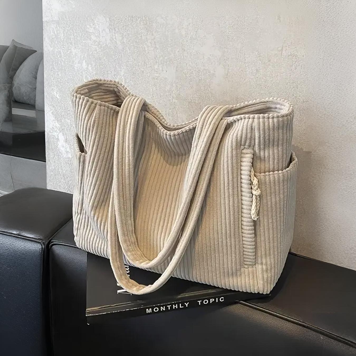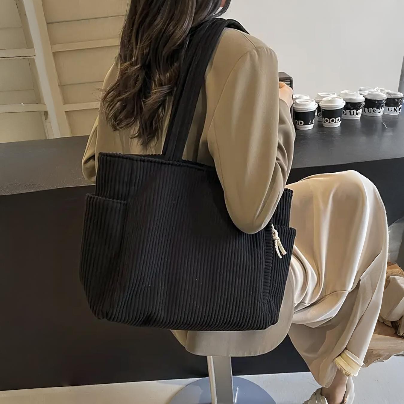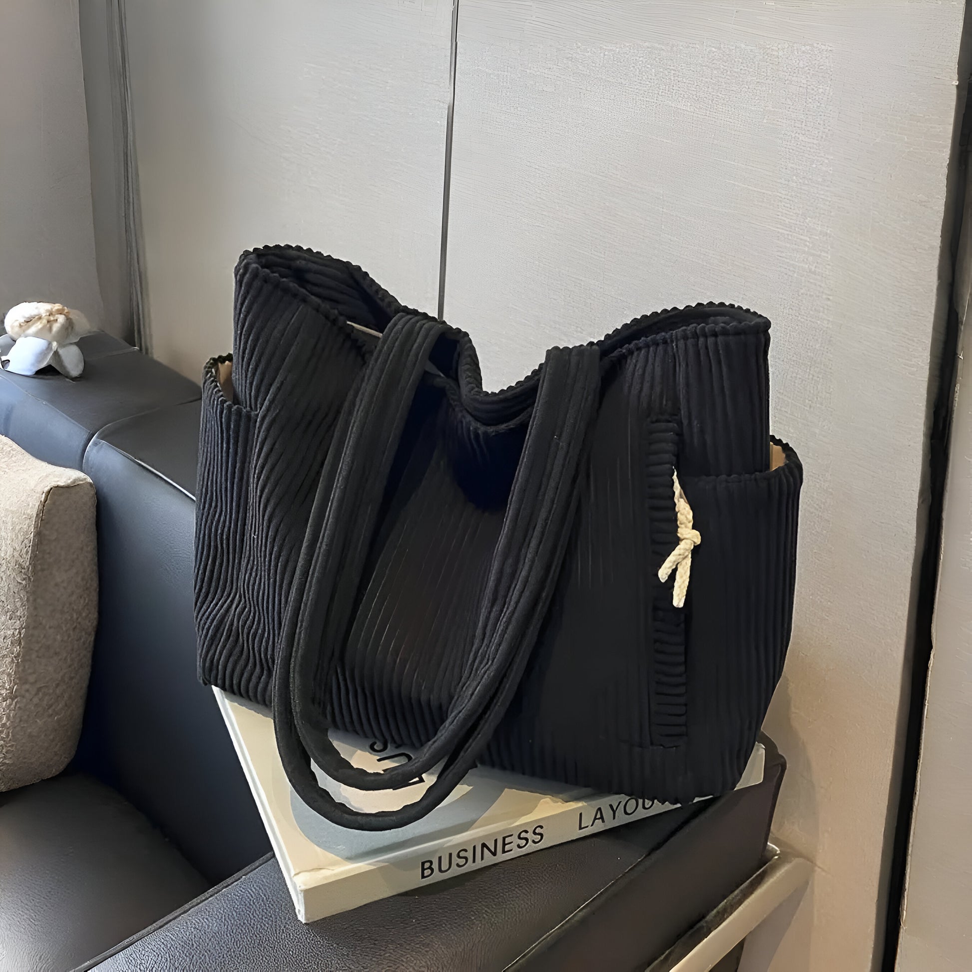 Velora™ Geribbelde draagtas met koorddetail – Stijlvol, ruim, onmisbaar